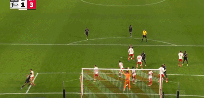 第90+3分钟,小红书丨哈德头球攻门,球击中门框弹出